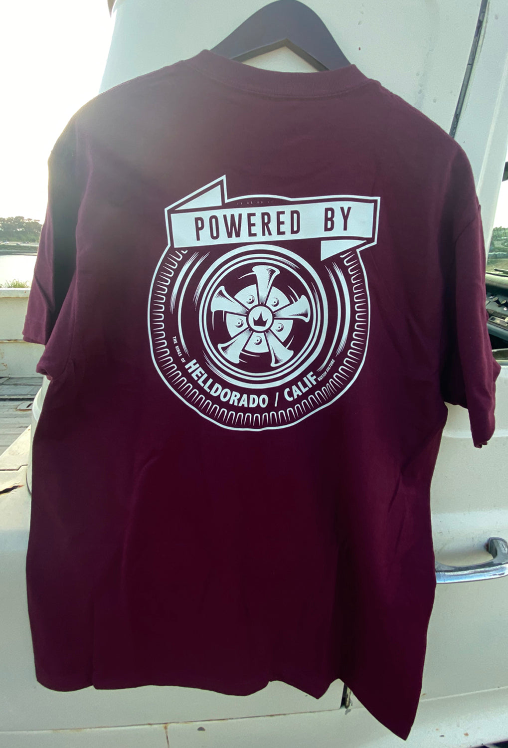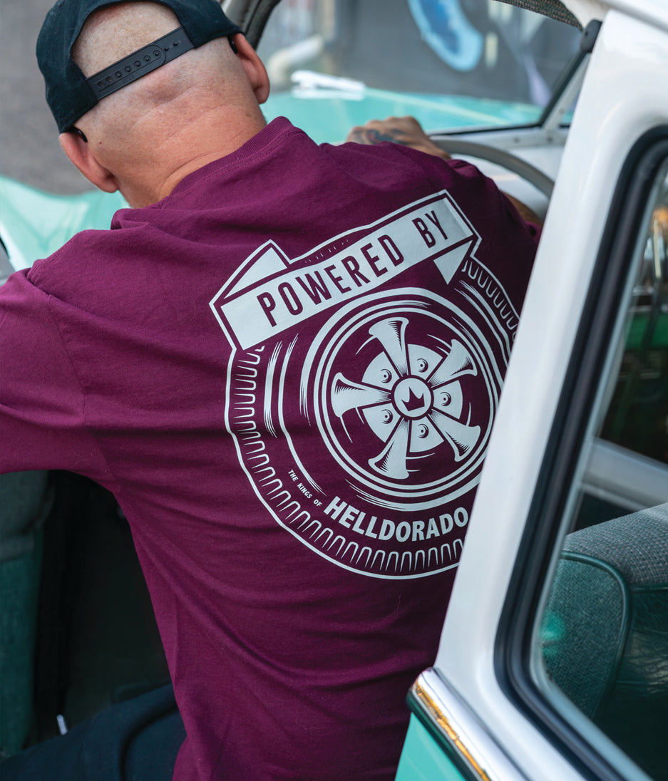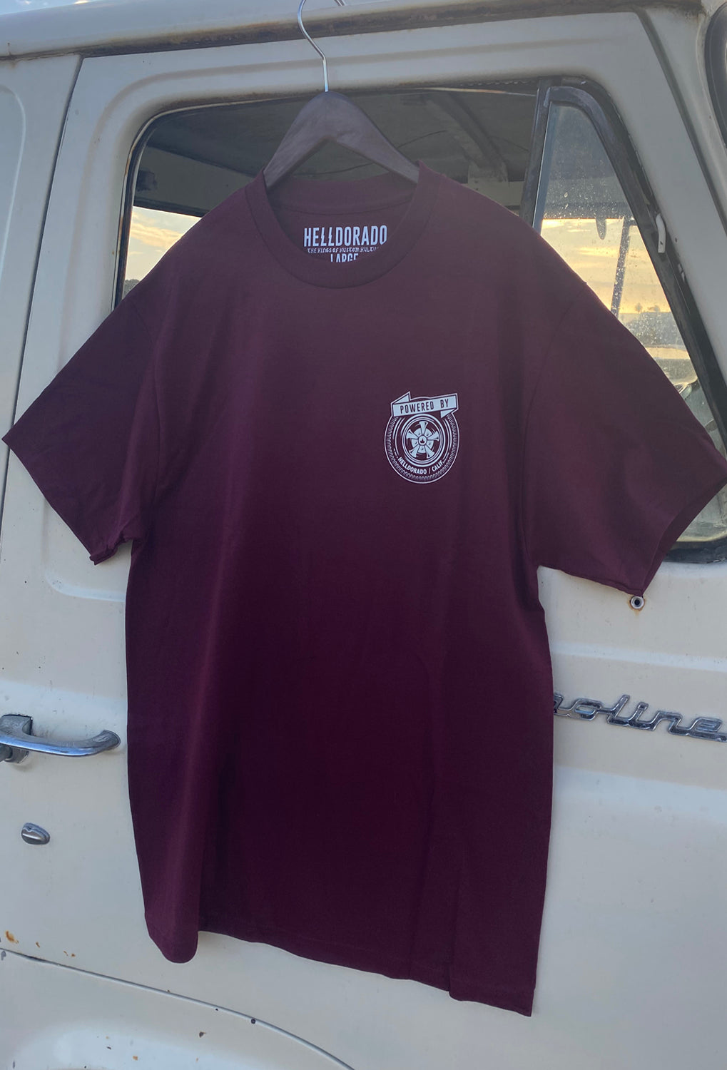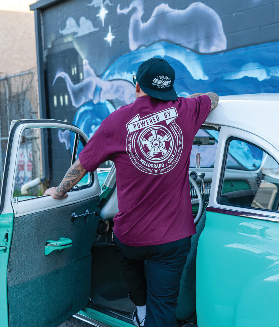 Our take on a vintage look. This cream print looks so killer on this deep maroon tee, an unreal combo!